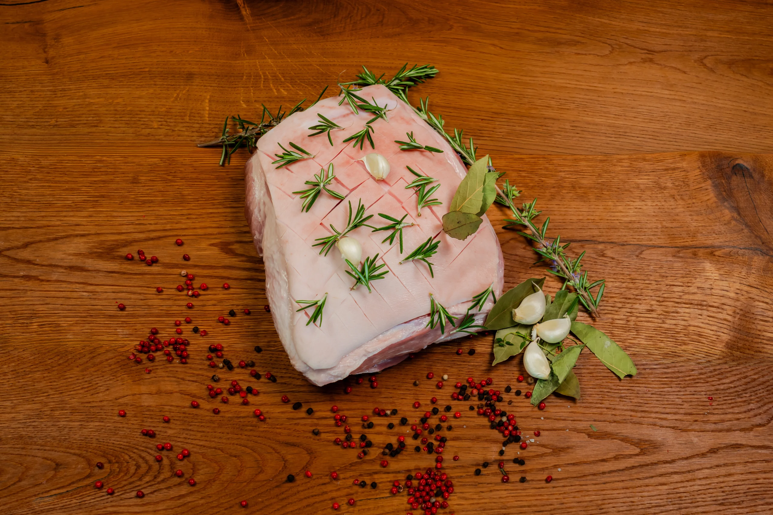 Schweizer Duroc, langsam gewachsen, von Metzgerhand zugeschnitten.